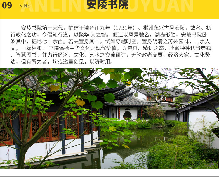 安陵書院被譽(yù)為一座活著的古書院,是湘南四大古書院之一,朱熹、周敦頤都文化名人的講學(xué)之地,湘南園林設(shè)計(jì)讓人心醉其中。也是永興便江邊上著名景點(diǎn)之一。