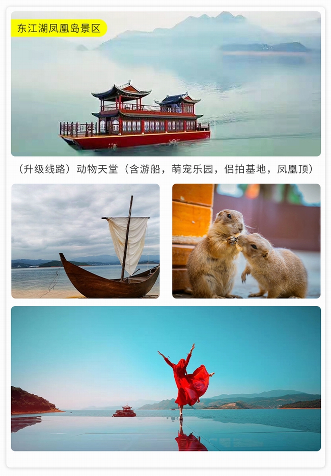 門票:仰天湖景區(qū)門票+鳳凰島景區(qū)門票+船費(fèi)+東江湖線路一門票+車費(fèi)