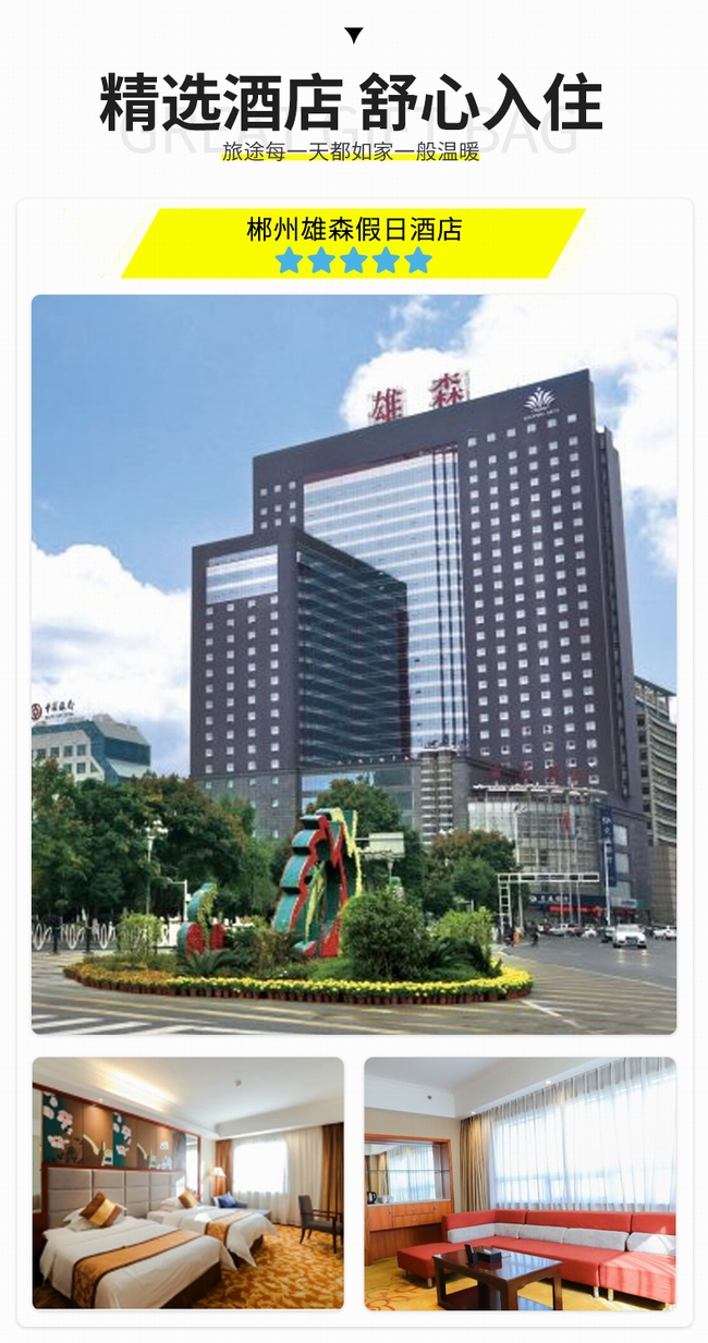 住宿:郴州市區(qū)準(zhǔn)五星級(jí)酒店1晚高級(jí)雙人間或高級(jí)大床房