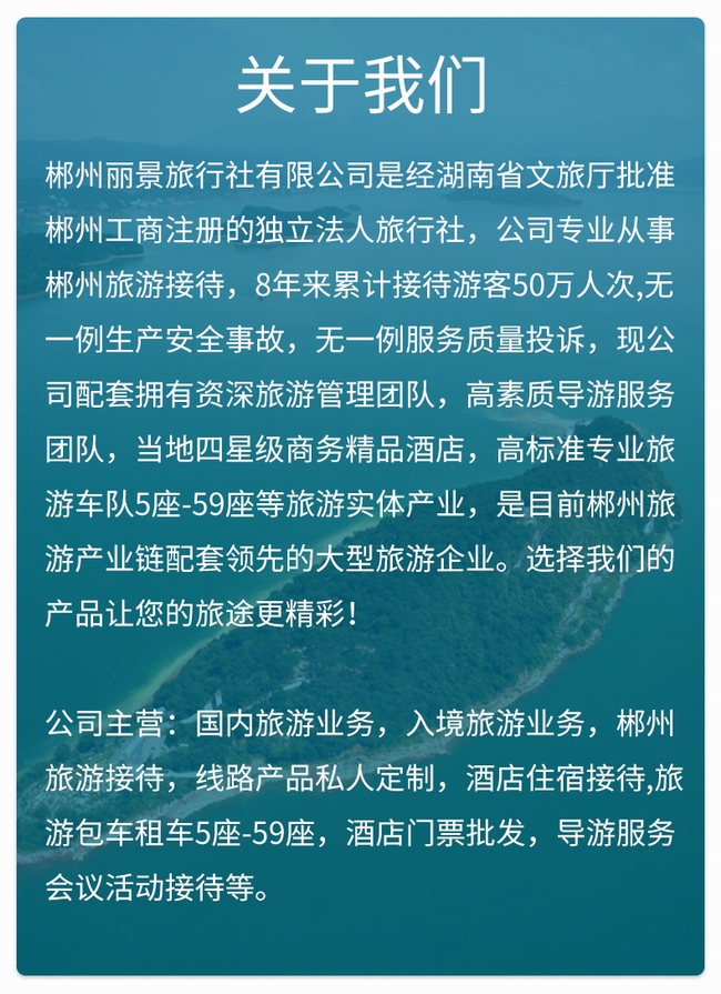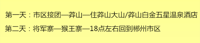 【莽山國家森林公園】以蟒蛇出沒,林海莽莽而得名,養(yǎng)山國家森林公園總面積2萬公頃。森林善率92.8%至今保存有6000公頃的原始森林,是湖南省面積森林公園,養(yǎng)山境內(nèi)山體垂直高差大,山勢險峻雄渾山岳地貌景觀具有高、險、雄、奇的特點。莽山聳立著干米以上的高峰,126座,主峰猛坑石(湘粵兩省共有)海拔1902米,有"天南峰"之稱。游畢,前往酒店入住。第二天:將軍寨景區(qū)一猴王寨景區(qū)-郴州送團自理早餐后前往景區(qū),換乘景區(qū)車進入【將軍石風(fēng)景區(qū)(徒步原始次森林,留影將軍古)鬼子寨是湖南省第一個自然景觀區(qū);獨特的自然景觀,山高石怪,林幽峰奇水色天光造就了莽山眾多壯麗秀美的景觀。如莽山頗有名氣的鬼子寨和崖子石和猴王寨景區(qū),其懸崖峭壁就像刀劍削劈一般。莽山的地形由東南向西北傾斜,相當(dāng)崎嶇相對高差大,一般為500-800米,最大高差達1400米。大凡游莽山者,無不在鬼子寨前如癡如醉。這里正處于原始林莽深處,300余米的幽深峽谷中,干尺飛瀑狂瀉四周懸崖峭壁遮天蔽日,奇松怪石令人驚嘆叫絕。繼而游覽【莽山動值物博物館,猴王寨瀑布群風(fēng)景區(qū)】猴王寨背靠原始林莽,危崖峭壁,古木蔽天,谷狹徑幽山挾水轉(zhuǎn),山水相間,飛瀑成群,一瀑一潭錯落有致;負(fù)離子高達 100300 個/cm3,時有野猴來此覓食戲水是游人戲人水觀猴、吸負(fù)離子潤肺的最佳境地。18:00前往郴州市區(qū)送團,結(jié)束愉快的郴州之旅!