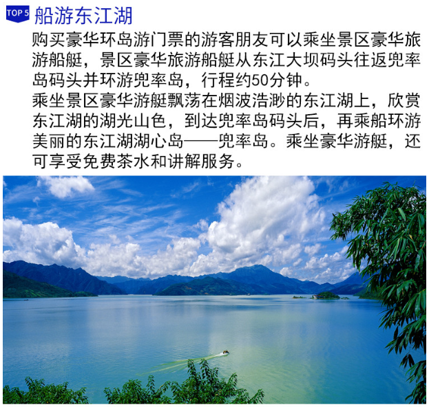 門票內(nèi)容:含霧漫小東江、車觀猴古山瀑布、東江大壩外景、龍景峽谷,游東江湖船費(fèi),景區(qū)用車,瀟湘風(fēng)情黃草鎮(zhèn)